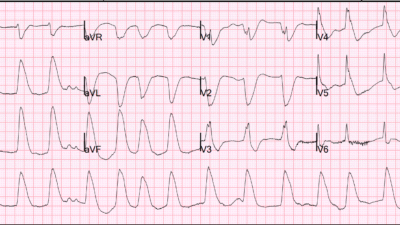 This is NOT a wide complex tachycardia. This is atrial fibrillation with “Shark Fin” pattern, an OMI pattern, and this time it is…