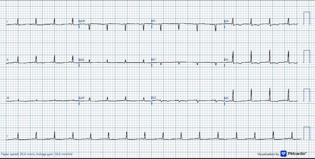 I looked at the ECG and told the triage nurse that based on this ECG I was worried the patient had a large/symptomatic pericardial effusion until proven otherwise. I brought POCUS and immediately confirmed this diagnosis at the initial bedside assessment.