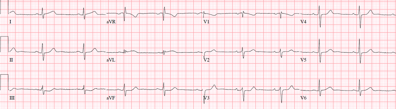 This was sent by a recent residency graduate who works at a hospital without a cath lab. As you might imagine, our graduates have learned to scrutinize ECGs for subtle findings: