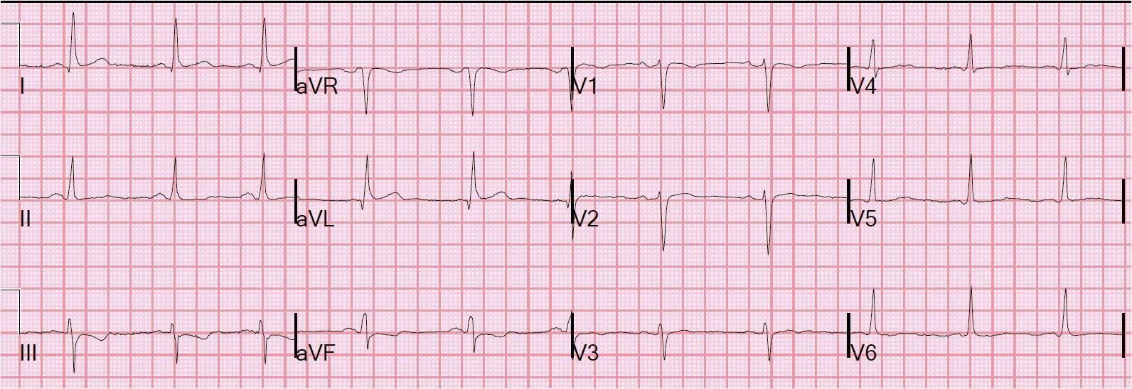 The patient’s pain increased while waiting for transport and another ECG was recorded: