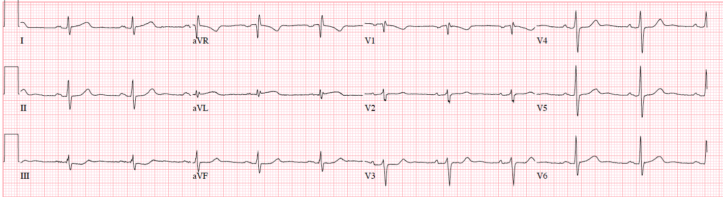 Here is another case for contrast, in which ST elevation in aVL with reciprocal ST depression in lead III is a false positive: