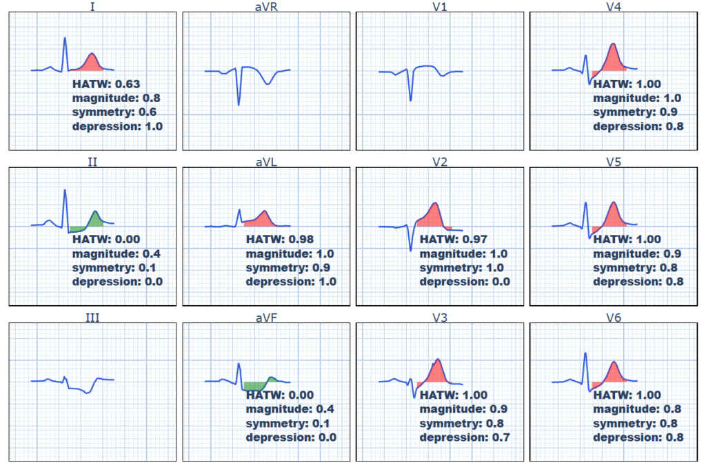 Also, here is the ECG with our objective HATW formula applied (the 3-variable version that also includes de Winter ST depression):