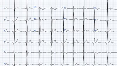 The ECG was read as sinus rhythm with no signs of STEMI (that’s of course true). Due to overcrowding, and thinking that he had normal vital signs and a “normal” ECG, he had initial labs drawn and was sent to the waiting room until a regular room became available. No medicines were given at that point.