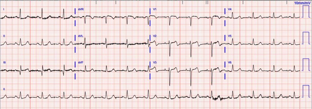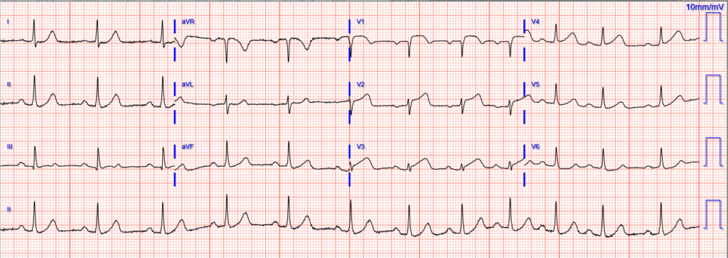 The initial troponin was 48 ng/L. This triggered a repeat ECG, 1.5 hours after first: