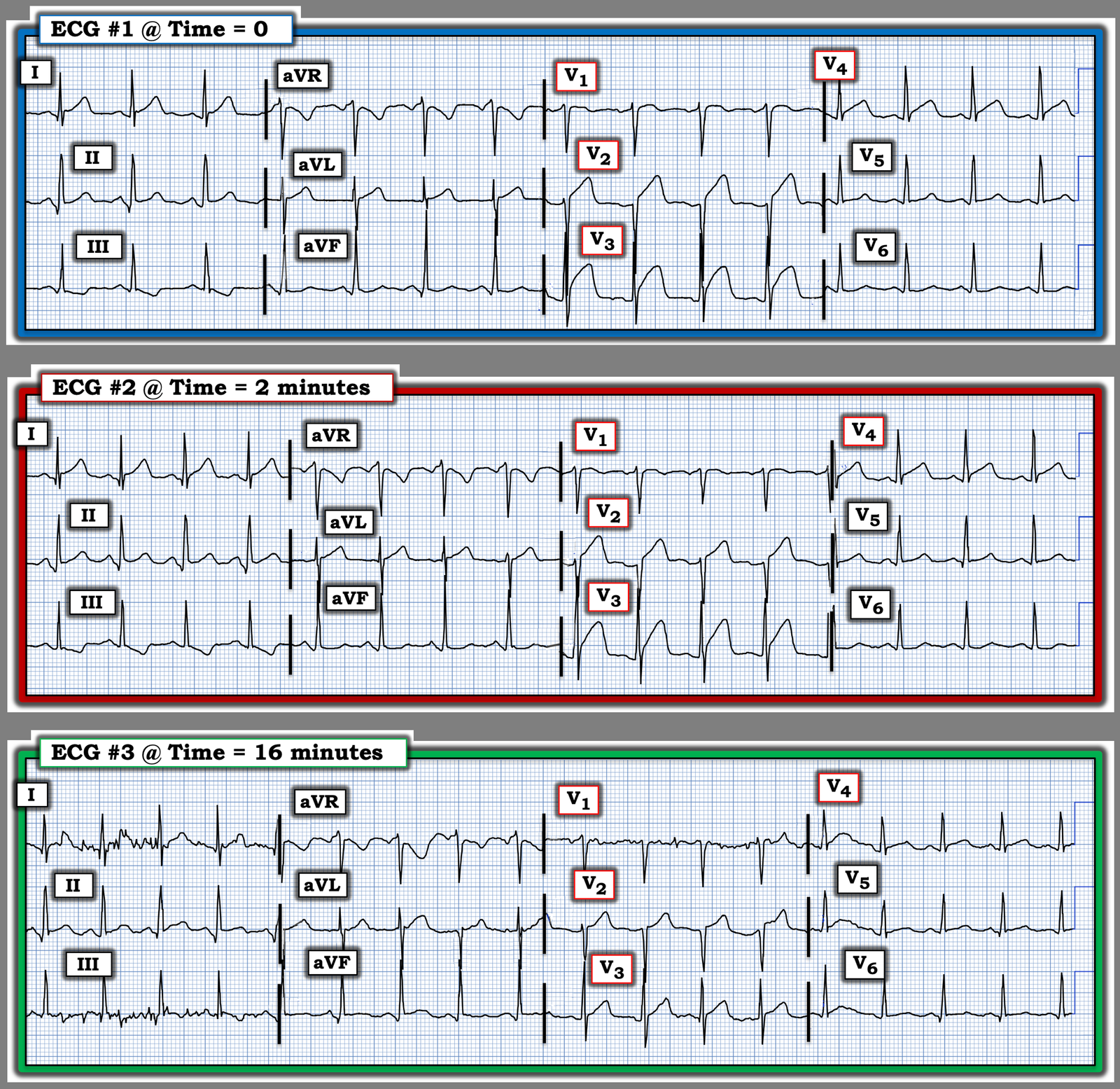 - I focus My Comment on the first 3 serial ECGs that were recorded within the first 16 minutes.