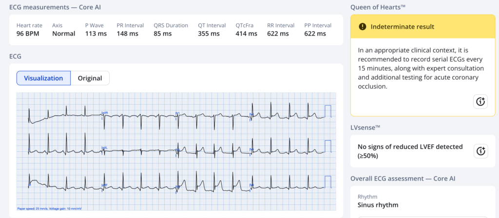 This result is from “PMCardio for Organizations.” “Indeterminate” means that this may indeed be OMI, but uncertain. It is not yet available on PMCardio for Individuals, but will be soon.”