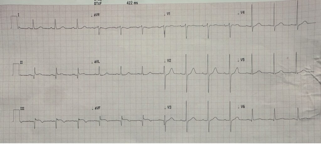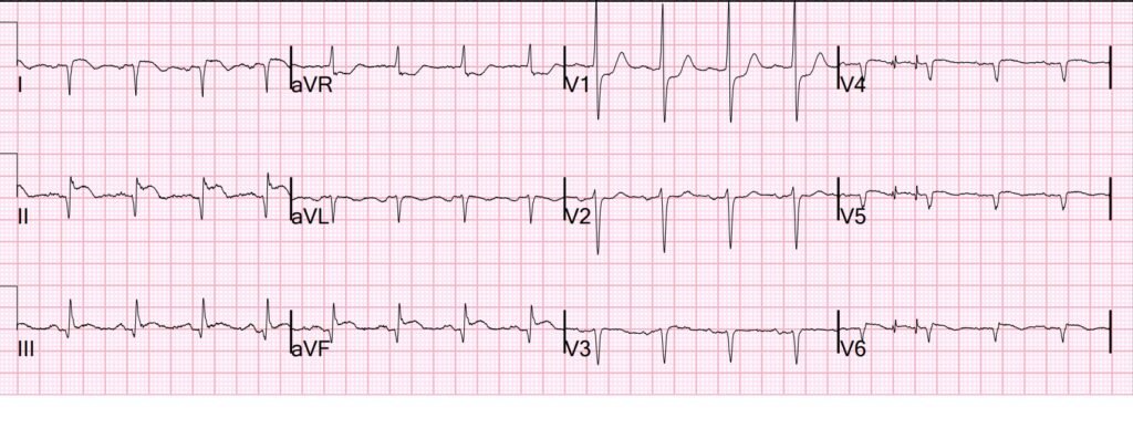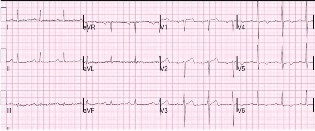 At this moment, while the patient was still completely pain free, we recorded another ECG: