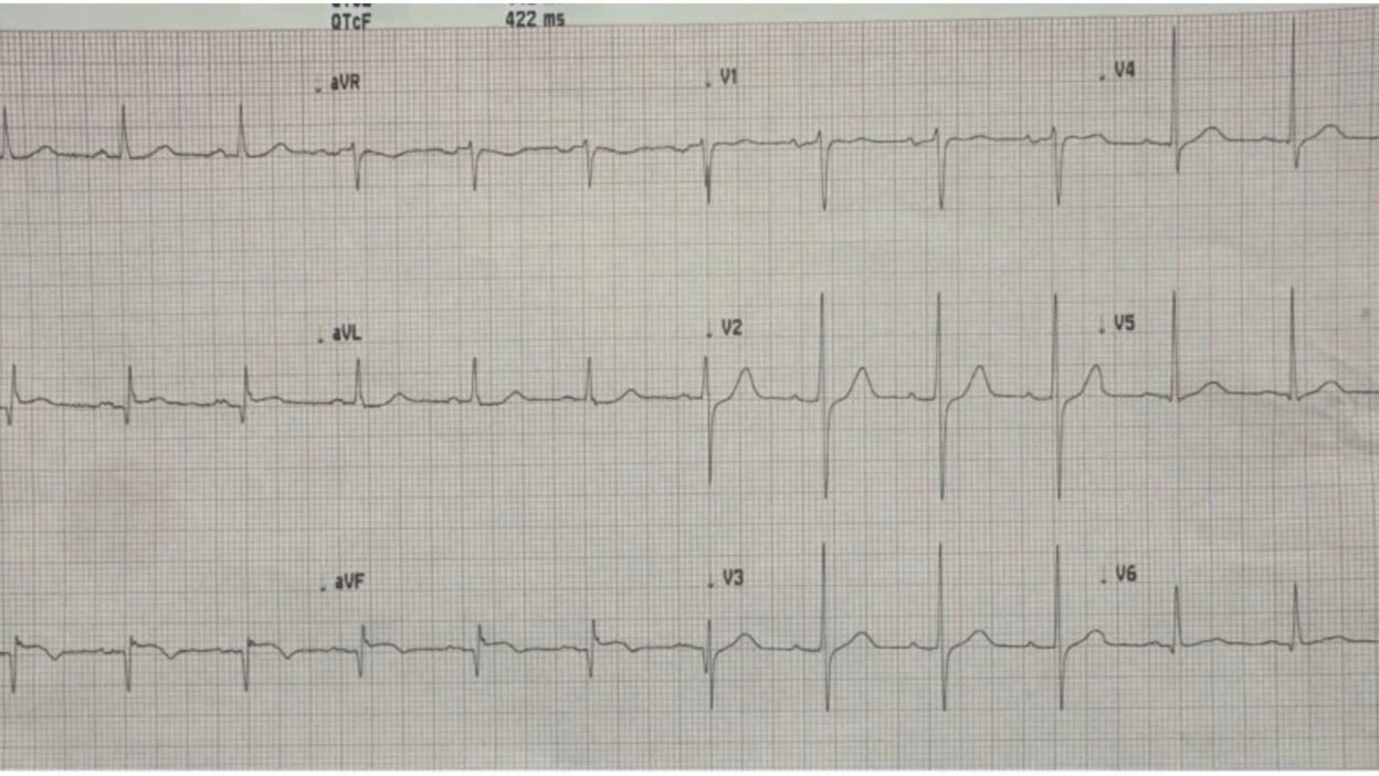 At this moment, while the patient was still completely pain free, we recorded another ECG:
