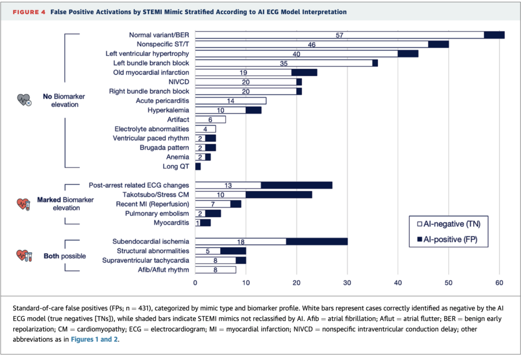 See this study: AI-Enabled ECG Analysis Improves Diagnostic Accuracy and Reduces False STEMI Activations: A Multicenter U.S. Registry. We showed that the Queen of Hearts decreases false positive cath lab activations from 42% to 8%. HOWEVER, in cases with elevated troponins such as myocarditis and takotsubo, it was much more difficult to differentiate a mimic from OMI.