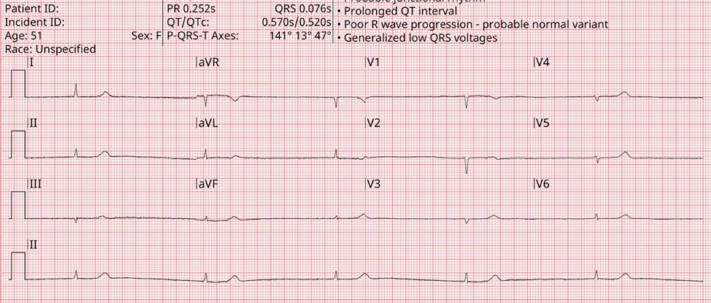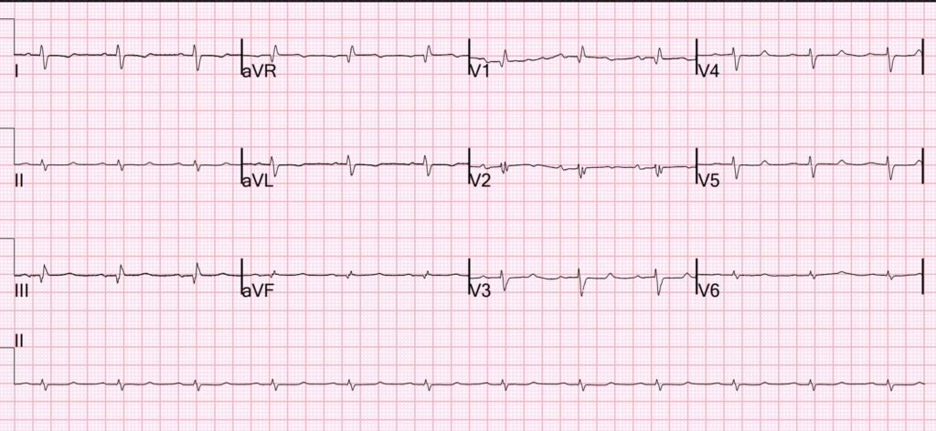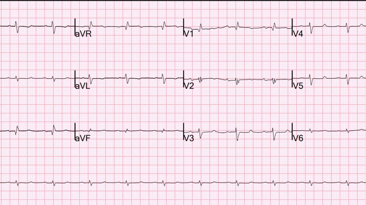 ECG 5: K = 7.1. This one is easy due to bradycardia. But still look how small the T-waves are.