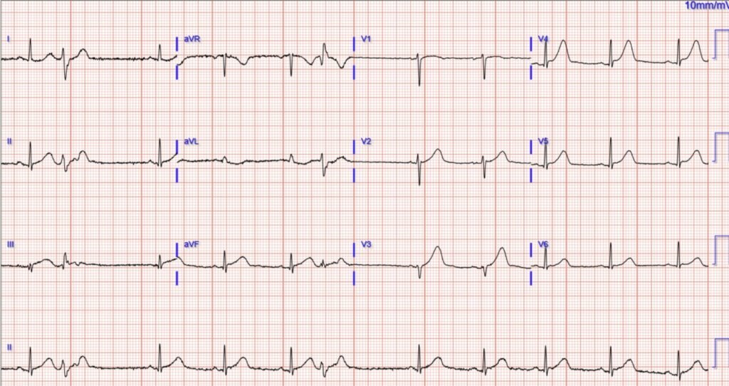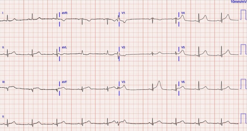 A repeat ECG was ordered to check for STEMI (around 4 hours in):