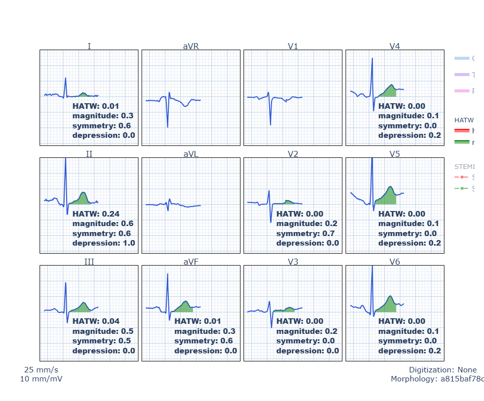 Here is what our formula looks like on the normal baseline ECG without HATWs (green means T waves within normal limits):
